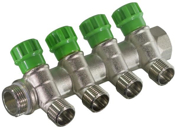 Коллектор с вентилями 135° никелированный под «ЕВРОКОНУС». 3/4*3/4 (3 выхода)