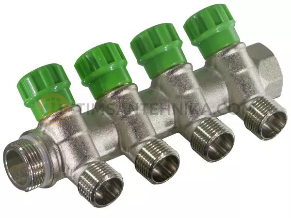 Коллектор с вентилями 135° Никелированный под «ЕВРОКОНУС». 3/4*3/4 (4 выхода) MR135N-3/4-4E