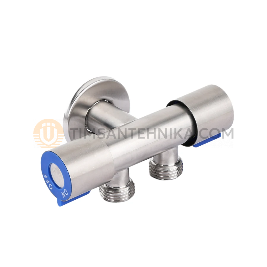Кран угловой нерж SUS304 2 выхода для сантехприборов (ш/ш/ш) 1/2"×1/2"×1/2", BL5856.02S