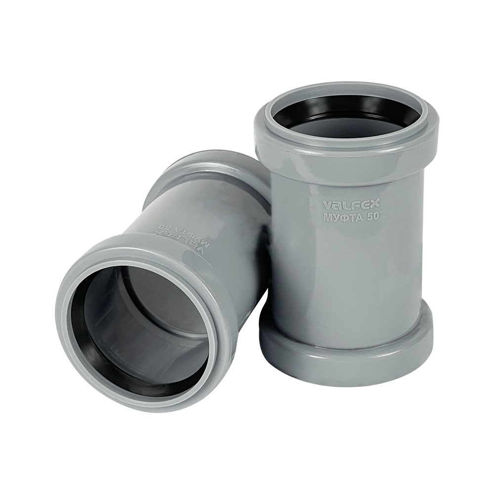 Муфта двухраструбная 50мм вн. канализация (350) VALFEX (соединительная, с перегородкой)
