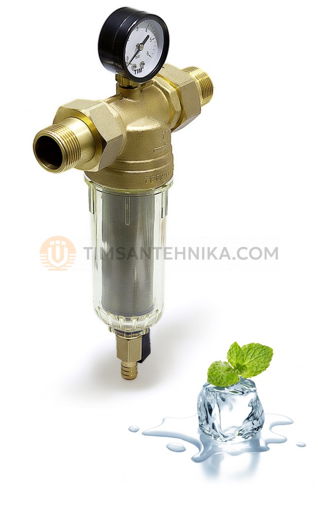 Самопромывной фильтр TIM 1 с манометром и пластиковой колбой JH-3002