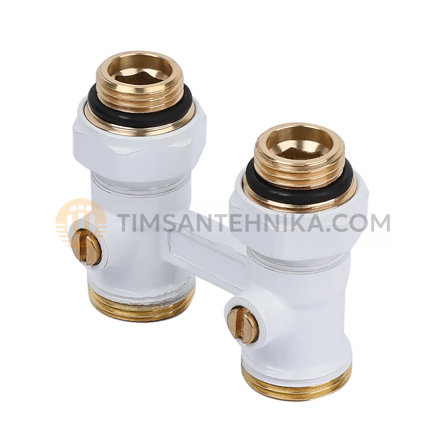Узел нижнего подключения радиатора с шаровыми кранами ПРЯМОЙ 1/2"x3/4" белый ME220CW